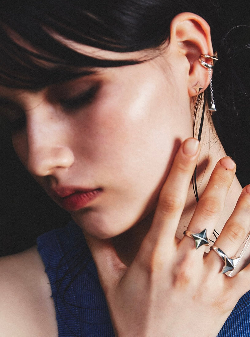 まるで満ちた月の傍らに、ひときわ輝く一番星のように。シャープなフォルムに凛とした立体感を宿したリングは、静かな夜に放たれる確かな意志を指先に添えてくれます。