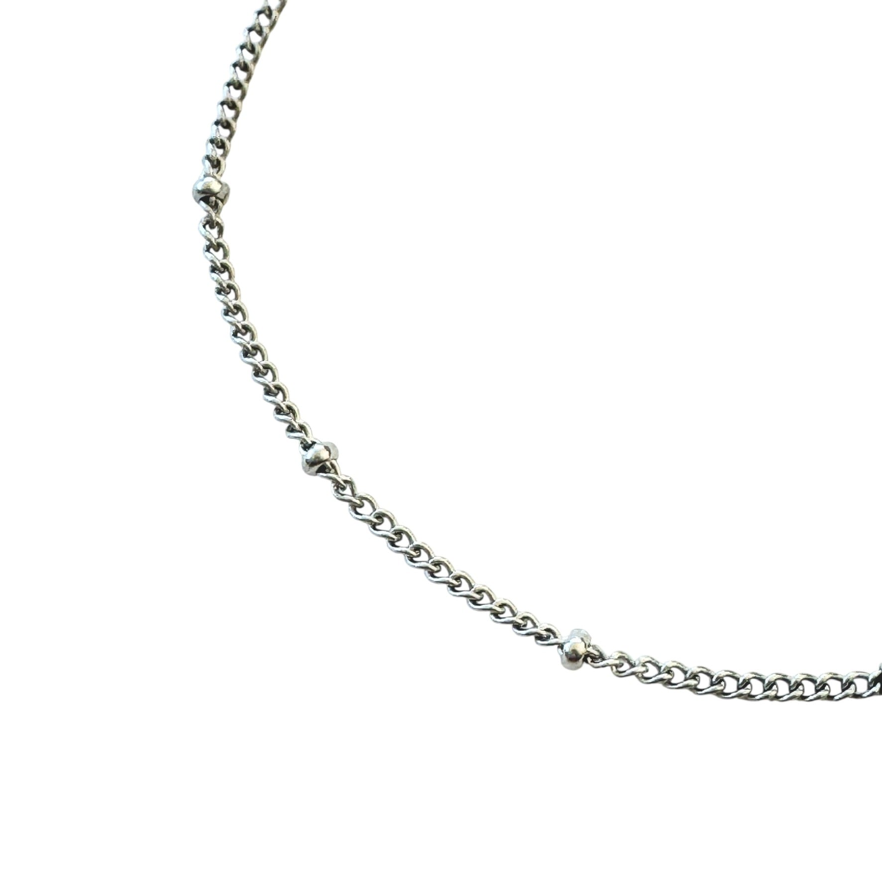 華奢なチェーンに小粒のアクセント。主張しすぎないデザインながら、凛とした美しさが際立ち、洗練された印象に仕上げてくれます。