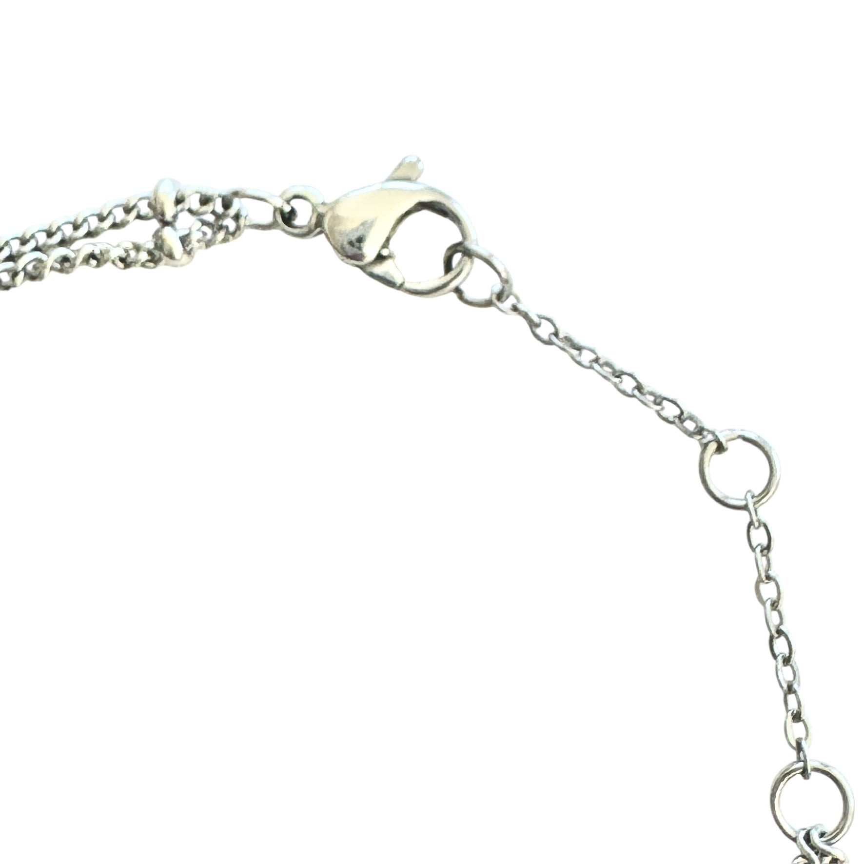 華奢な2連チェーンに小粒のアクセントをあしらったブレスレットは、重ね付け不要!これ一つで、女性らしさとこなれ感を演出。