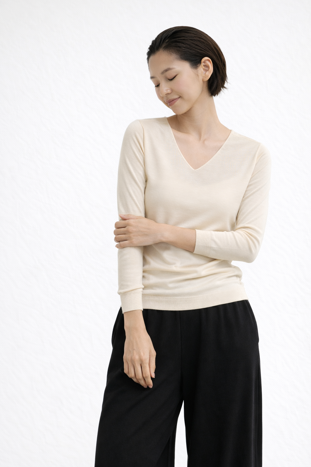 日常に自然と溶け込む、上質なシルクカットソーです。